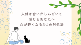 人間関係人付き合いがしんどいと感じるあなたへ|心が軽くなる3つの対処法 人付き合いがしんどいと感じるのは、あなたが優しいからです。気を遣いすぎてしまう理由・断れない悩み・LINEの負担など、共感できる悩みと心が軽くなる3つの対処法をお伝えします。 2026.03.26人間関係