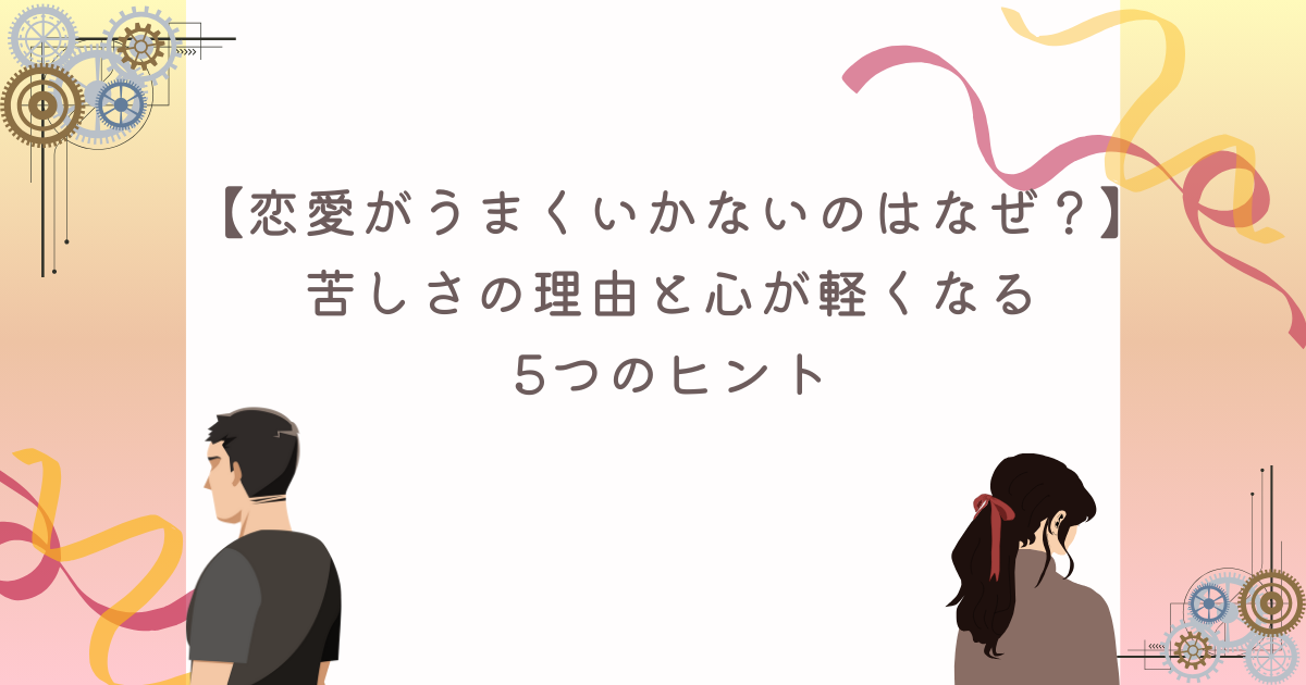 本記事では、恋愛がうまくいかない理由と、心が少しでも軽くなるヒントをお伝えします。